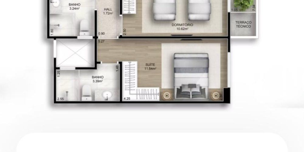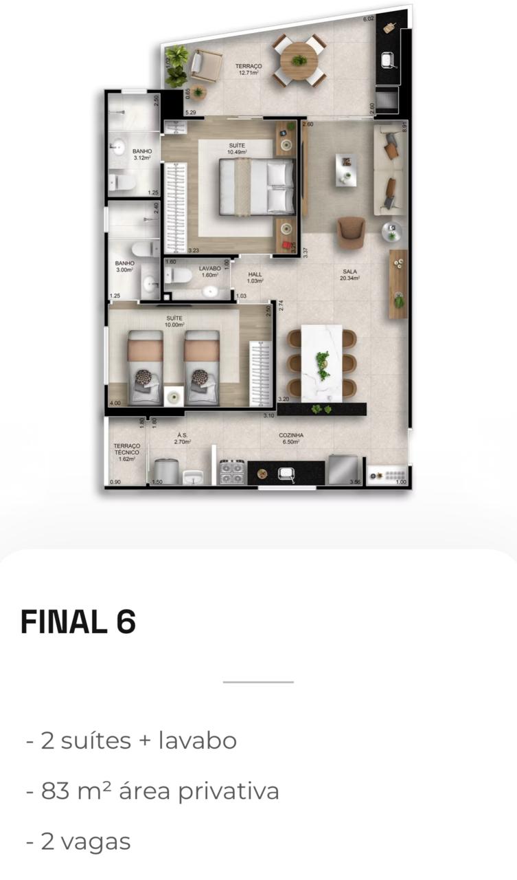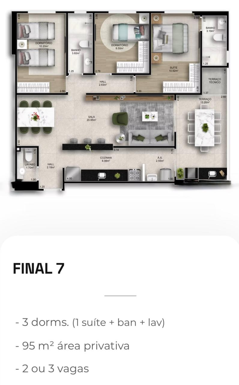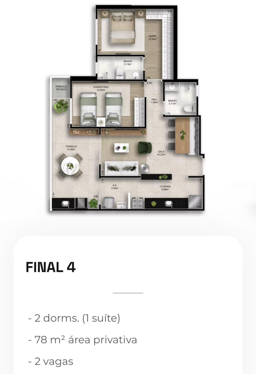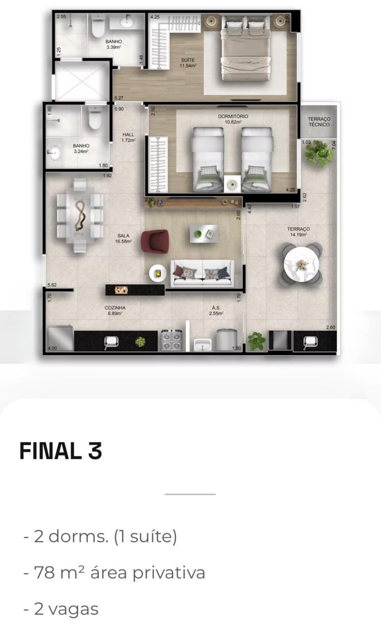 Apartamentos de 2 e 3 dormitórios, de 78 a 118 m², com 2 ou 3 vagas de garagem.