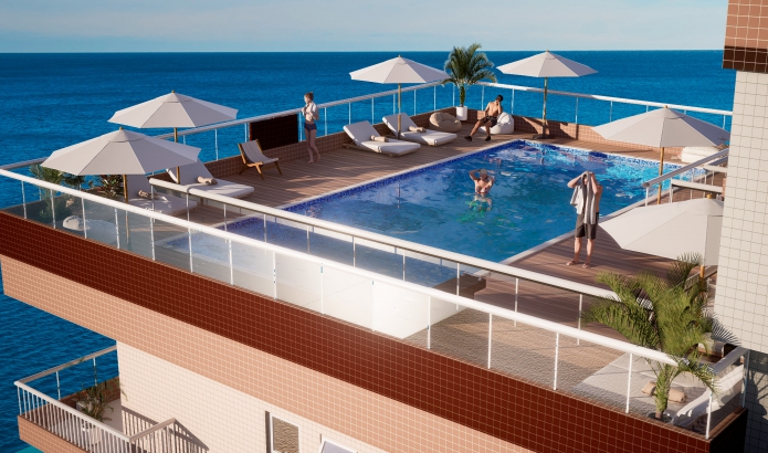 Apartamentos Frente Mar de 2 e 3 dormitórios, de 69 a 106 m², com 2 ou 3 vagas de garagem.