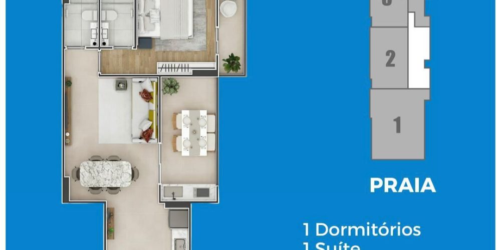 Apartamentos de 1 dormitório no Boqueirão - Praia Grande, a 500 metros do mar