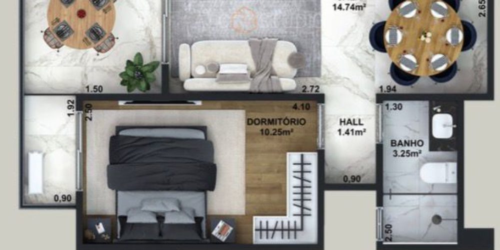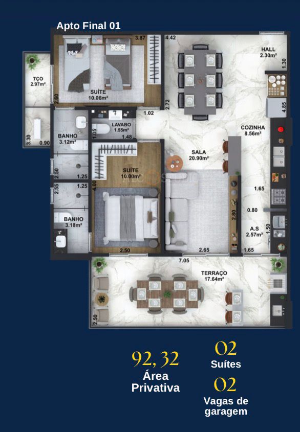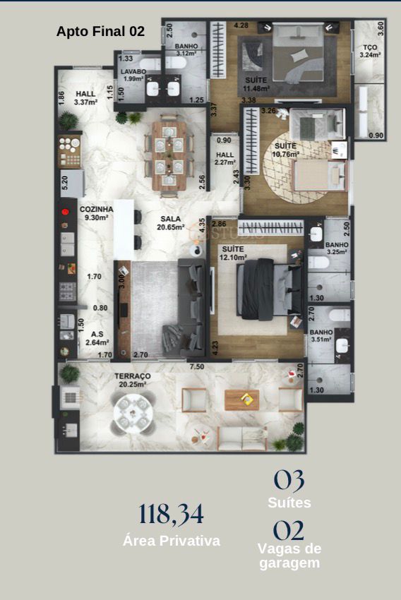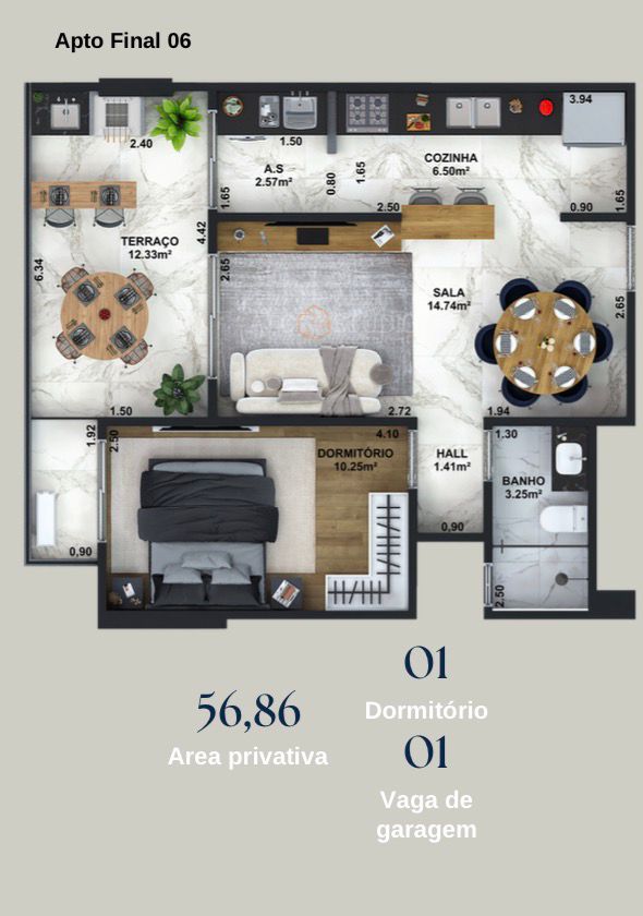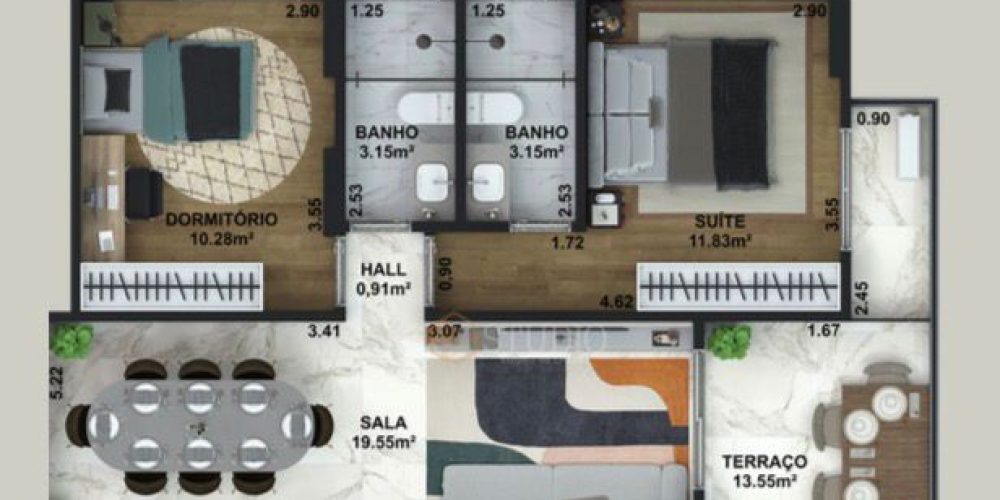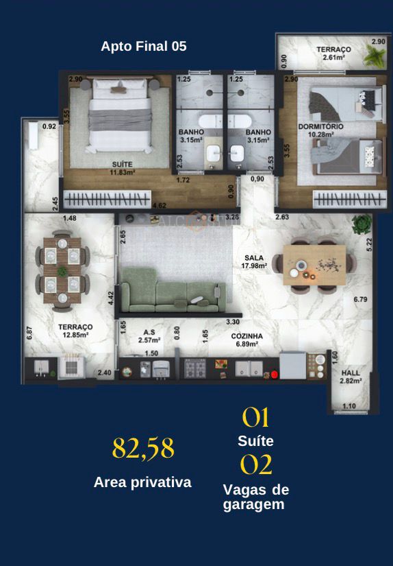 Apartamentos de 1, 2 e 3 dormitórios, de 56 a 118 m², com até 2 vagas de garagem.