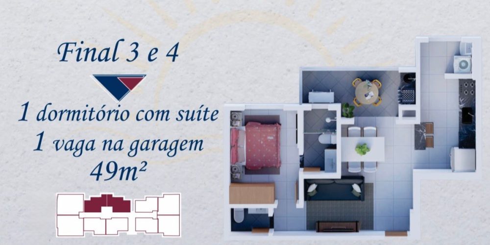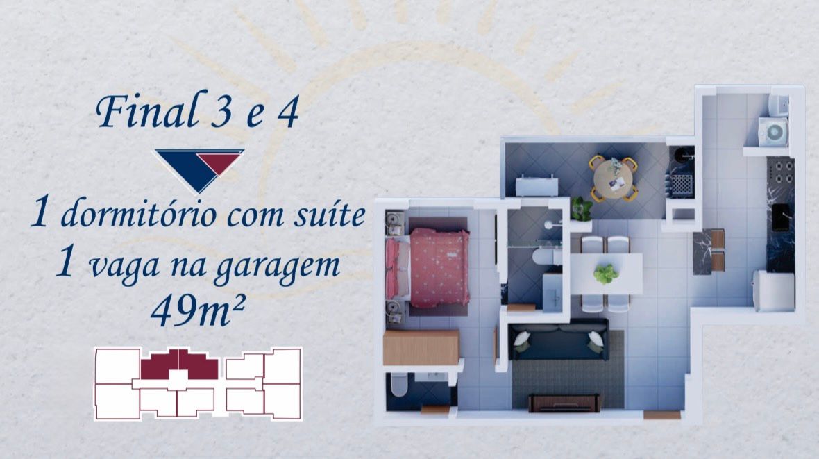 Apartamentos de 1 dormitório no Boqueirão - Praia Grande, a 500 metros do mar